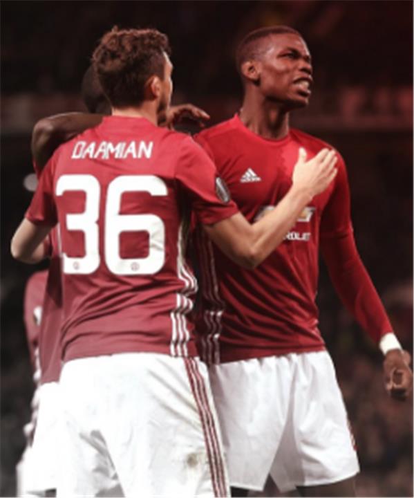 وعاد بوجبا ليضيف الهدف الثالث للريد ديفلز من تسديدة رائعة في الدقيقة 45 ،لينتهي الشوط الأول بثلاثية نظيفة.