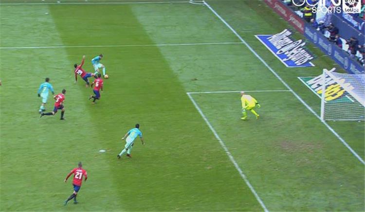 وكان هدف اللاعب الأوروجواني في الوهلة الأولى يظهر أن اللاعب في موقف تسلل واضح، بتواجده وحيداً في منطقة جزاء أوساسونا، أثناء تمرير خوردي ألبا الكرة لسواريز.