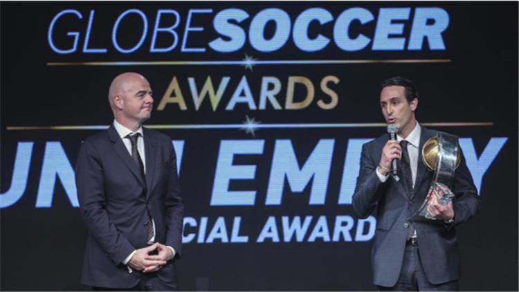 Unai Emery presented with 'Special Award" from the President of @FIFAcom Giannin Infantino @UnaiEmery_ #GlobeSoccer