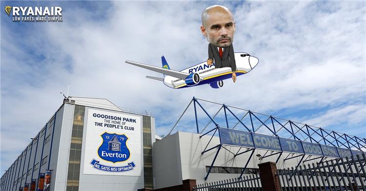 سخرت شركة طيران إنجليزية تُدعى "Ryanair "، من المدرب الإسباني بيب جوارديولا، المدير الفني لفريق مانشستر سيتي، بعدما تلقى هزيمة قاسية أمام إيفرتون برباعية نظيفة، على ملعب جوديسون بارك.