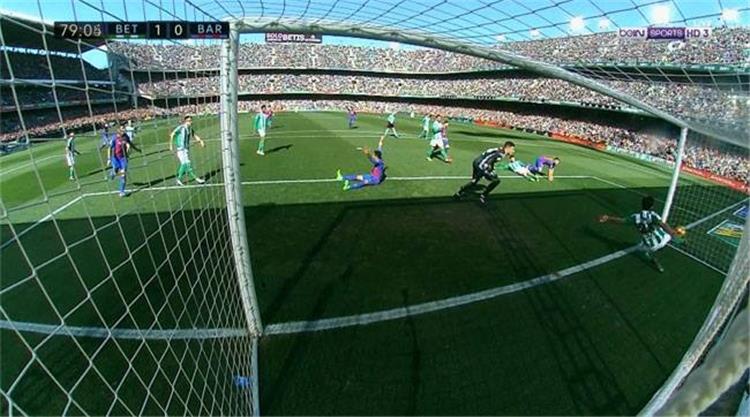 وأظهرت الإعادة التليفزيونية أن الكرة تخطت بالكامل، خط مرمى فريق بيتيس، وسط إعتراضات من فريق برشلونة بالكامل.