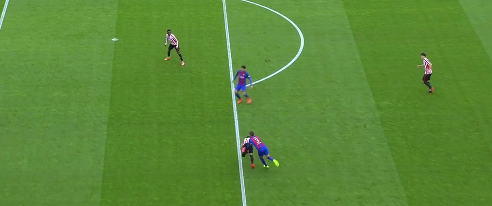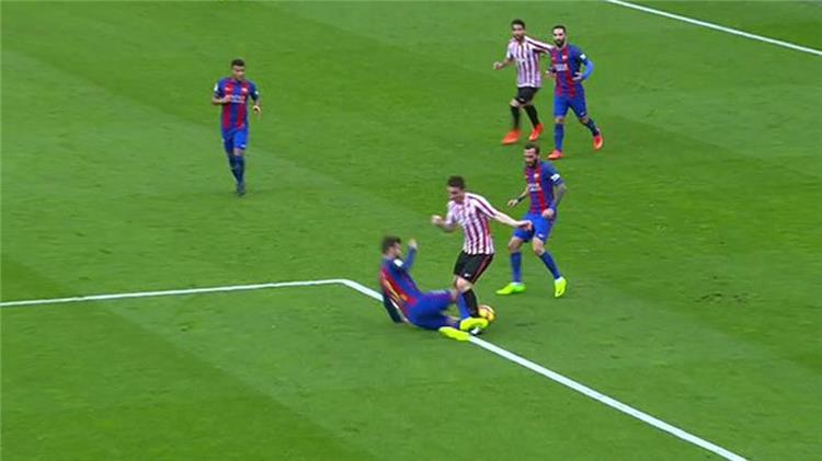 جاء ذلك بسبب تدخل بيكيه مرة أخرى في الشوط الأول ودفعه إيمريك لابورت،في الشوط ذاته.