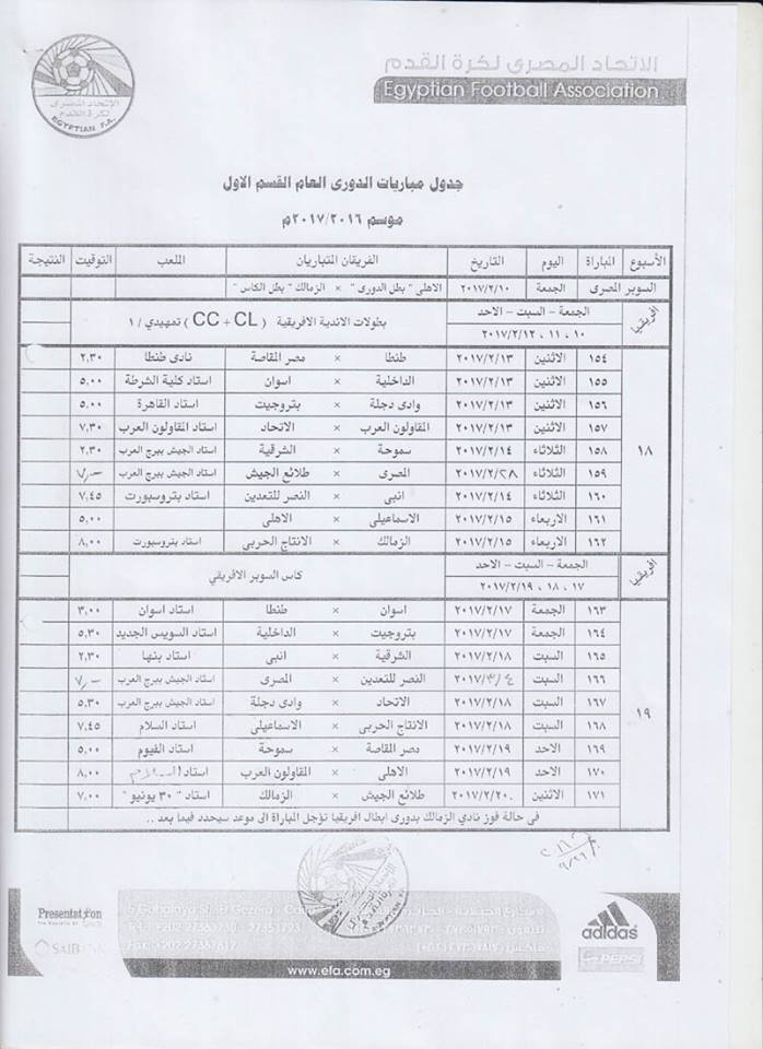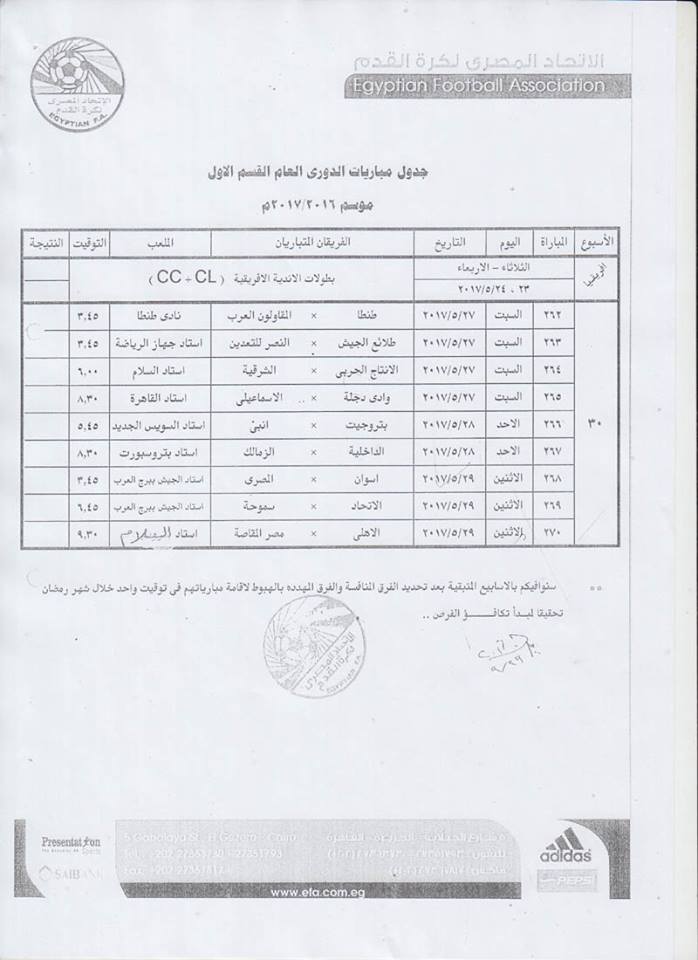 أعلنت لجنة المسابقة بالاتحاد المصري لكرة القدم، برئاسة عامر حسين، موعد الجولات الـ 30 من الدور الثاني من الدوري الممتاز، والمقرر انطلاقه بداية من يوم الأحد المقبل .