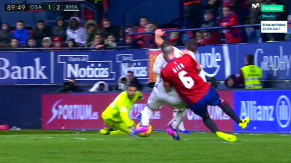 كذلك شهد الدقيقة 90 دفعة من أوير لاعب أوساسونا للوكاس فاسكيز لاعب ريال مدريد داخل منطقة الجزاء ولم يحتسلها الحكم أيضاً.