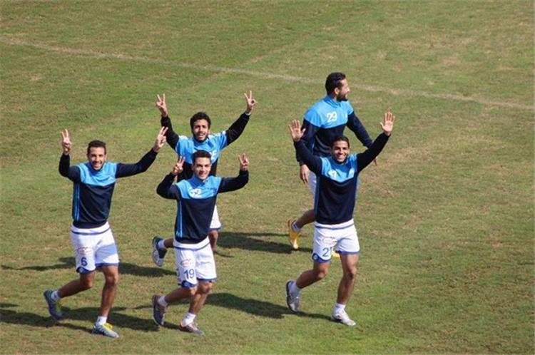وقام اللاعبون خلال المران بالتلويح بعلامة النصر فى إشارة منهم بالتوفيق لزملائهم خلال مباراة اليوم أمام الأهلى .