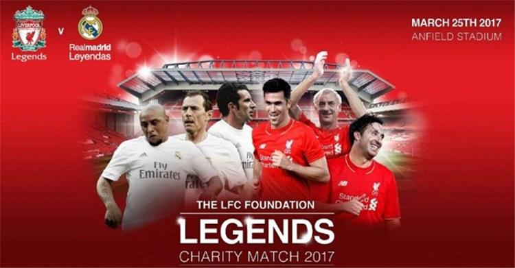 ويلتقي فريقا أساطير ليفربول وريال مدريد على ملعب أنفيلد تكرارا للحدث الذي أقيم على ملعب سانتياجو برنابيو بالعاصمة مدريد في يونيو 2015.
