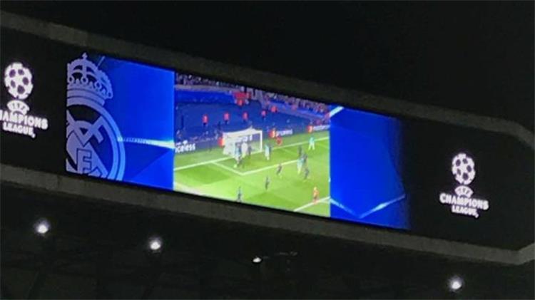 ووفقًا لصحيفة (آس) الإسبانية، قامت إدارة ملعب " سانتياجو بيرنابيو " بعرض ملخص من أهداف مباراة برشلونة أمام باريس سان جيرمان، حيث استخدمت لوحة الملعب.