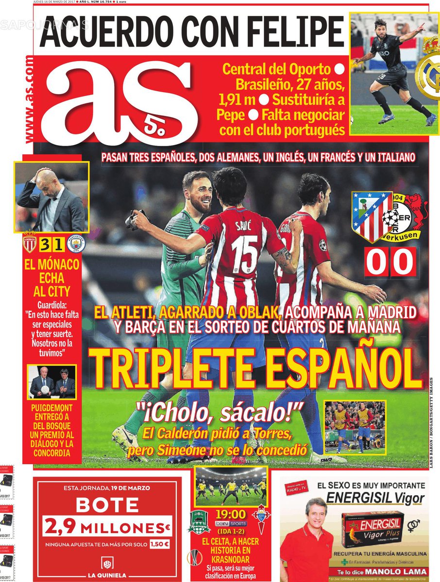 أتلتيكو مدريد بقيادة أوبلاك يرافق ريال مدريد وبرشلونة إلى ربع النهائي بعد التعادل.