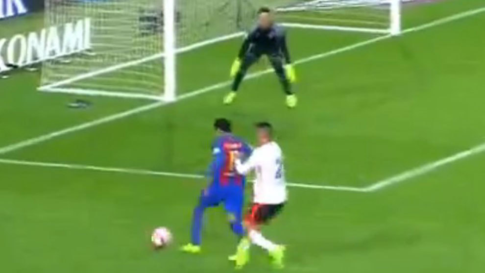وشهدت الدقيقة 27 لقطة تسببت في جدل حول الأداء التحكيمي بسقوط نيمار دا سيلفا مهاجم برشلونة داخل منطقة الجزاء مطالباً بركلة ترجيح، لم يحتسبها حكم المباراة.
