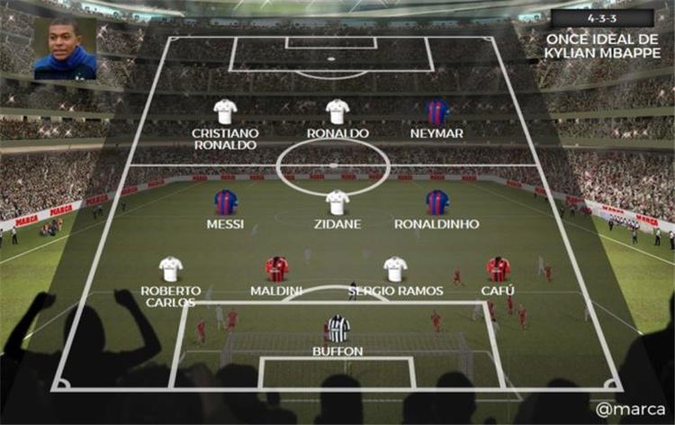 ويبدو أن اللاعب الفرنسي يحاول استمالة جماهير بطل أوروبا حيث نشرت صحيفة " ماركا " الإسبانية نقلًا عن موقع " فوت ميركاتو " الفرنسي التشكيلة المثالية من وجهة نظر مبابي وتواجد بها خمسة لاعبين ملكيين.