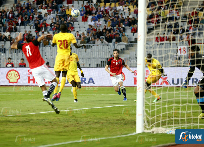 سجل أهداف منتخب مصر، محمود عبدالمنعم كهربا وأحمد الشيخ ومحمد النني، على الترتيب.