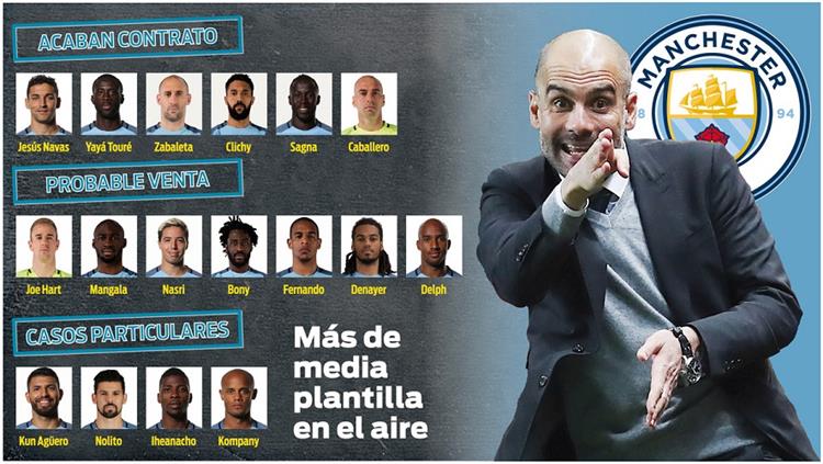 بات من الواضح أن الإسباني بيب جوارديولا، المدير الفني لفريق مانشستر سيتي سوف يستغنى عن عدد كبير من اللاعبين بنهاية الموسم الحالي.