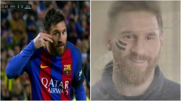 وأنتهى الشوط الأول للمباراة بتقدم برشلونة بثلاثية نظيفة، وعقب تسجيل ميسي لهدفه أحتفل بإشاره أثنين من إصبعيه على وجهه.