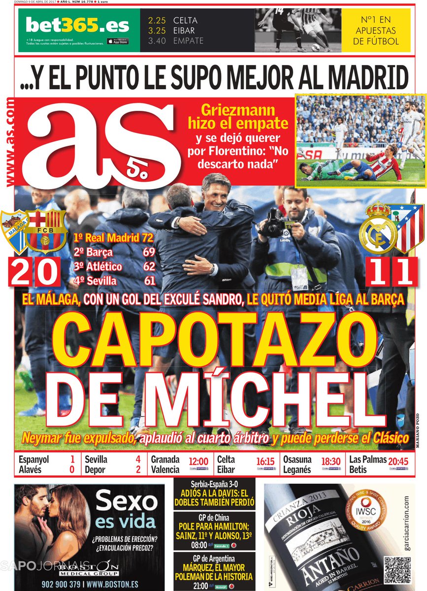 صحيفة "آس": مالاجا بهدف البرشلوني السابق "ساندرو " يبعد نصف الليجا عن برشلونة