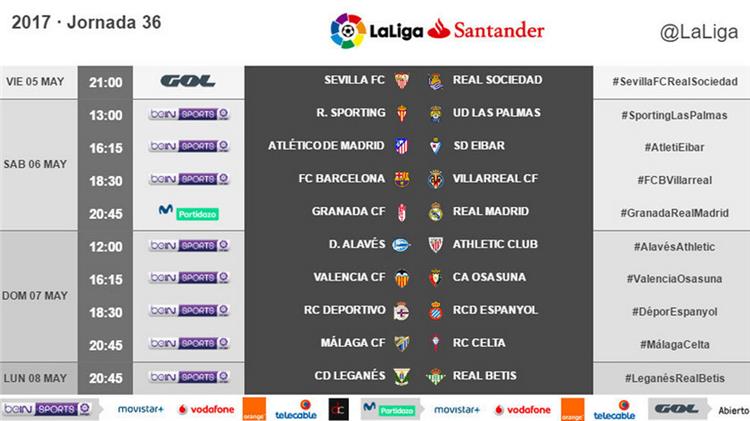 وستبدأ تلك الجولة بمواجهة بين فريقي إشبيلية وريال سوسيداد يوم الجمعة 5 مايو، على أن يلتقي أتلتيكو مدريد وإيبار في اليوم التالي.