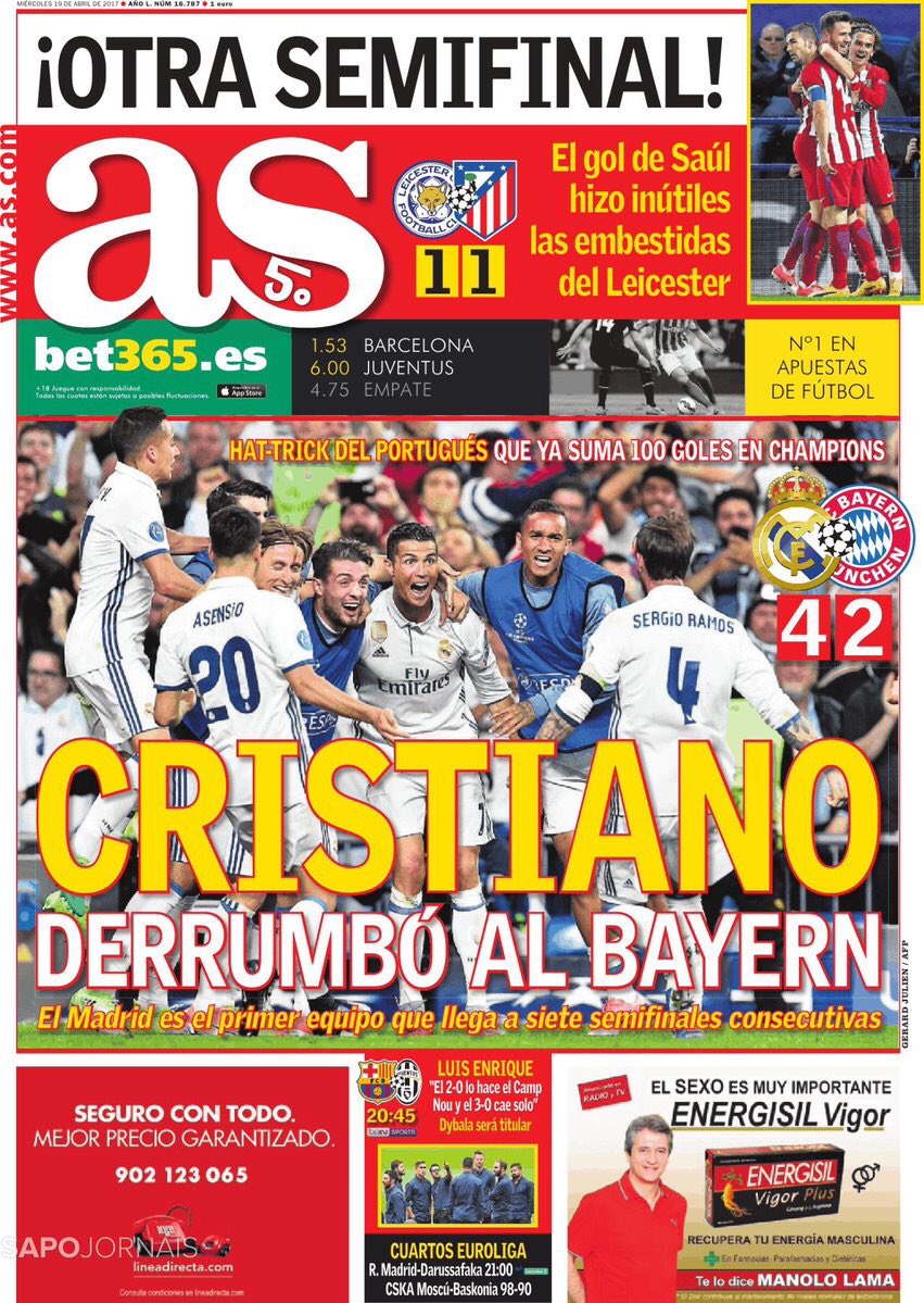 ويستعرض "بطولات" أبرز إشادات الصحف العالمية بتأهل فريقا ريال وأتلتيكو مدريد، والبرتغالي رونالدو.