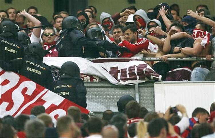 وهاجمت قوات الأمن بعض جماهير بايرن ميونخ بالأمس، أثناء لقاء ريال مدريد وفريقهم، على ملعب سانتياجو بيرنابيو، بين شوطي المباراة.