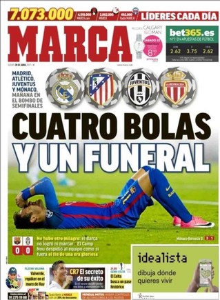 فجاء عنوان صحيفة ماركاالإسبانية :" أربع كرات وجنازة".