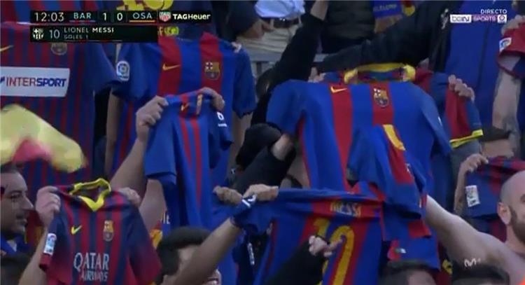 في لقطة جميلة، احتفلت جماهير فريق برشلونة بالهدف الذي سجله النجم ليونيل ميسي في شباك فريق أوساسونا بنفس الطريقة التي احتفل بها بعد تسجيله هدف الفوز أمام فريق ريال مدريد يوم الأحد الماضي.