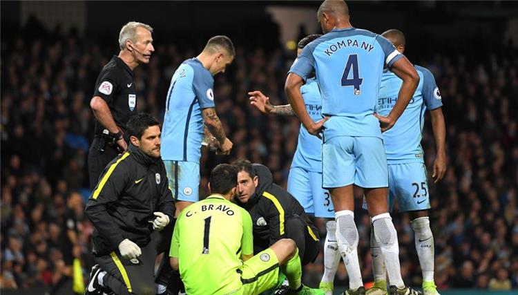 تلقى التشيلي كلاوديو برافو، حارس مرمى فريق مانشستر سيتي إصابة خلال مباراة فريقه أمام مانشستر يونايتد أدى إلى استبداله في الدقيقة 79.