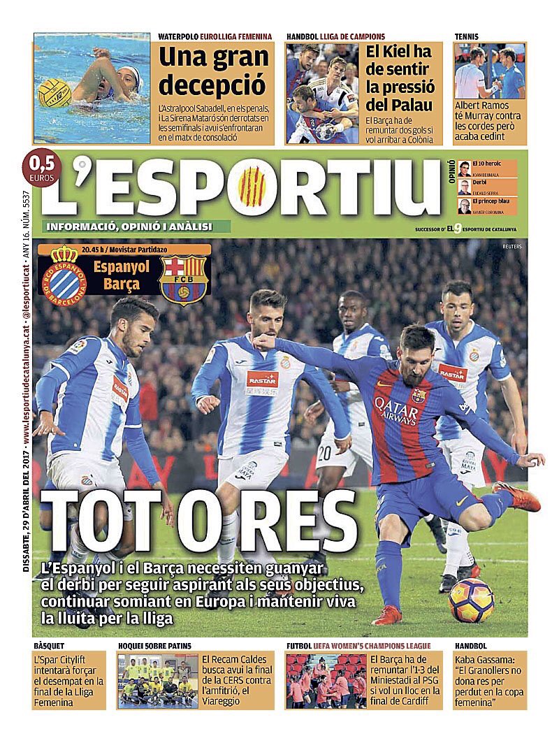 إسبانيول يحتاج للفوز في الديربي لمتابعة أهدافه بالحلم الأوروبي، وبرشلونة يريد الحفاظ على تصدره للدوري.