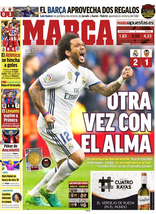 مارسيلو ينقذ ريال مدريد بقدمه اليمنى في الدقيقة 86.
