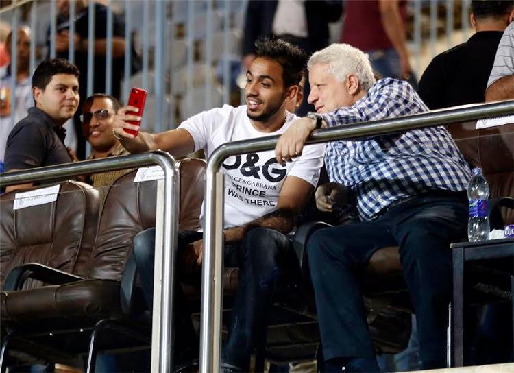 عقد مرتضى منصور، رئيس نادي الزمالك، جلسة مع محمود عبد المنعم "كهربا"، لاعب الفريق الأول، على هامش مباراة الأبيض أمام الإسماعيلي الجارية الآن على ملعب بتروسبورت، ضمن منافسات الجولة 27 من بطولة الدوري المصري الممتاز.