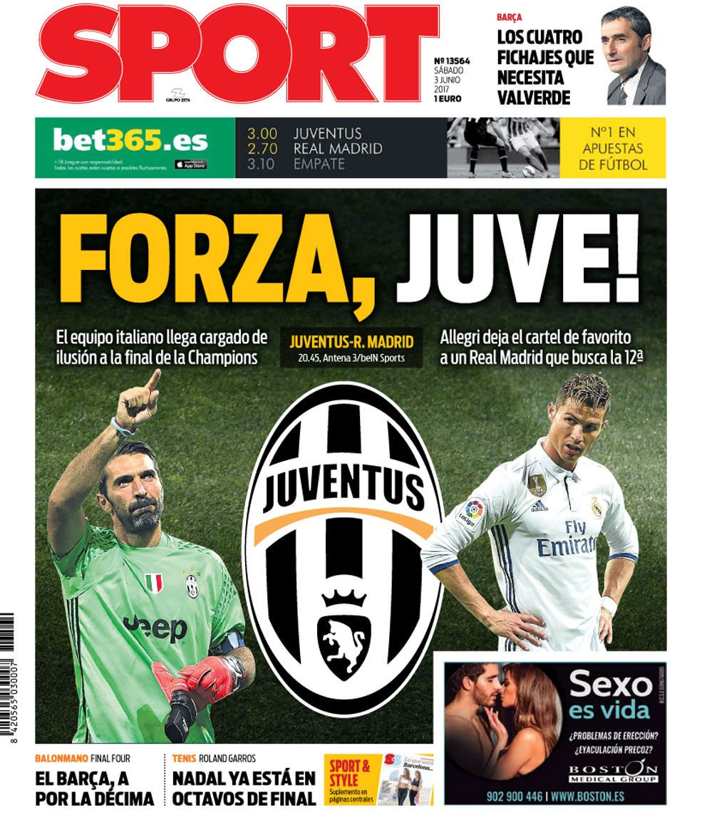 أعلنت الصحف الإسبانية المهتمة بنادي برشلونة عن مساندتها لفريق يوفنتوس في نهائي دوري الأبطال.