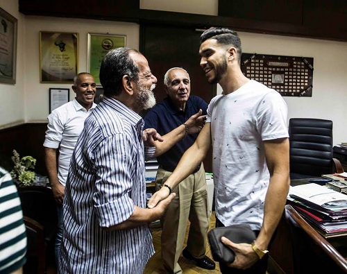 حظي اللاعب المغربي وليد أزارو المنضم حديثًا للنادي الأهلي بترحيب كبير من جانب أعضاء القلعة الحمراء، خلال تواجده اليوم الخميس بمقر الجزيرة، للخضوع للكشف الطبي.