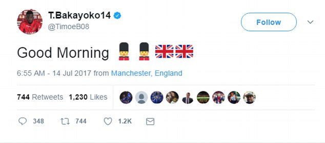 عقب ذلك نشر باكايوكو تغريدة تضمنت رموزًا تعبيرية تحمل اللونين الأحمر والأبيض، وأوضح أنه بمدينة مانشستر الإنجليزية.
