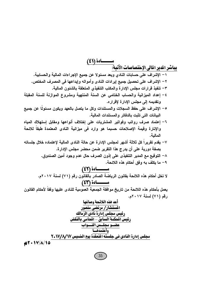 أعلن نادي الزمالك، برئاسة مرتضى منصور، اللائحة الجديدة للقلعة البيضاء، التي سيتم التصويت عليها خلال الجمعية العمومية، المقرر لها يوم الجمعة المقبل، بمقر الأبيض.