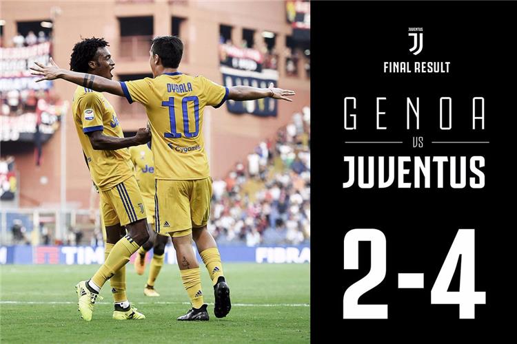 فاز فريق يوفنتوس على مضيفه فريق جنوي بأربعة أهداف مقابل هدفين فى مباراة مثيرة، جمعت بين الفريقين مساء اليوم، فى إطار مباريات الجولة الثانية من الدوري الإيطالي على ملعب لويجي فيراريس.