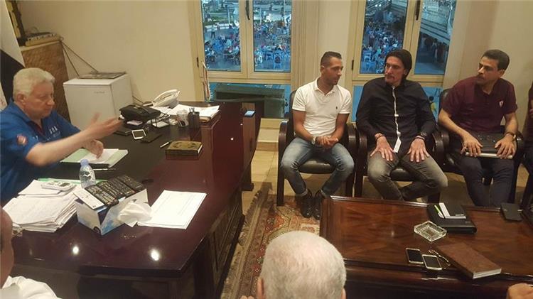 اجتمع مرتضى منصور رئيس مجلس إدارة الزمالك، مع المونتنيجري نيبوشا يوفوفيتيتش المدير الفني الجديد، في مقر القلعة البيضاء اليوم، لتعريفه بأفراد الطاقم المعاون له في مهمته مع الفريق.