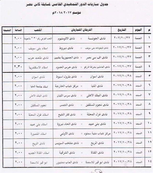 أعلنت لجنة المسابقات بالاتحاد المصري لكرة القدم، جدول مباريات الدور التمهيدي الخامس لبطولة كأس مصر "64."