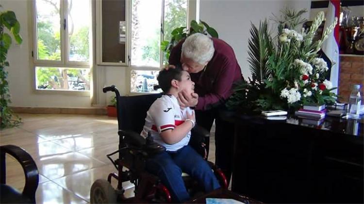 استقبل مرتضى منصور، رئيس نادي الزمالك، الطفل المعاق محمود مكاوي، مشجع الفريق الأبيض، في مقر النادي، بميت عقبة.