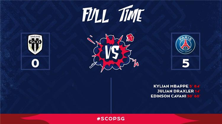 تمكن فريق باريس سان جيرمان من تخطي فريق أنجيه بخمسة أهداف دون رد في المباراة التي جمعت بينهما مساء اليوم ضمن لقاءات الجولة الثانية عشر من بطولة الدوري الفرنسي.