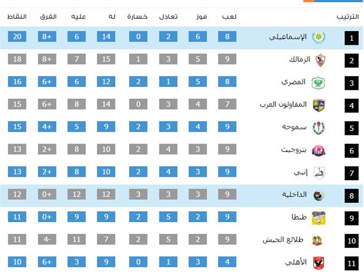 وشهدت الجولة مواصلة الإسماعيلي لتصدر جدول ترتيب المسابقة، برصيد 20 نقطة، وبفارق نقطة وحيدة عن المصري الذي يحل في الوصافة.
