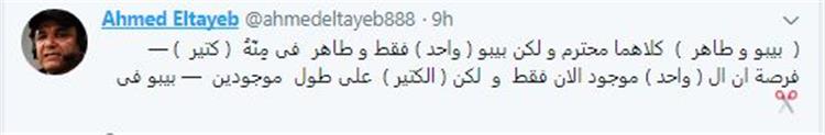 ونشر الطيب على حسابه الخاص عبر موقع التواصل الاجتماعي "تويتر": (بيبو وطاهر) كلاهما محترم، ولكن بيبو واحد فقط، وطاهر في منه كتير".