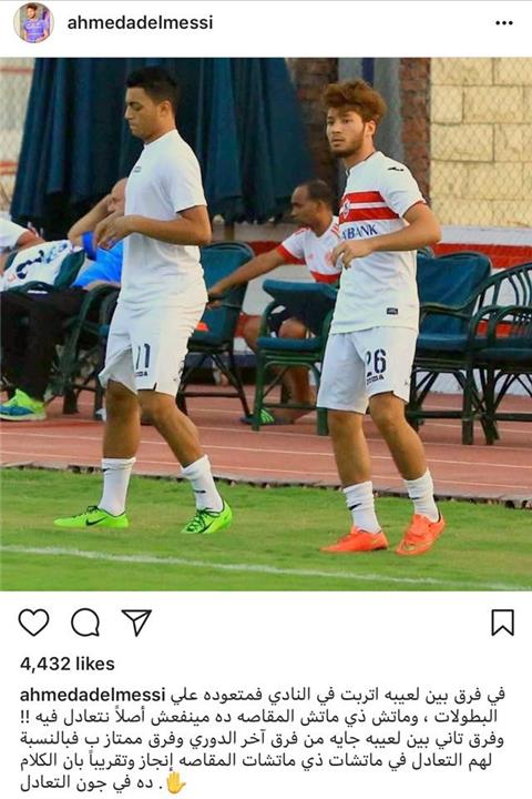 وكان أحمد عادل الشهير بـ"ميسي"، نشر عبر حسابه الخاص "انستجرام" أنتقد فيه لاعبي الزمالك عقب التعادل مع المقاصة.
