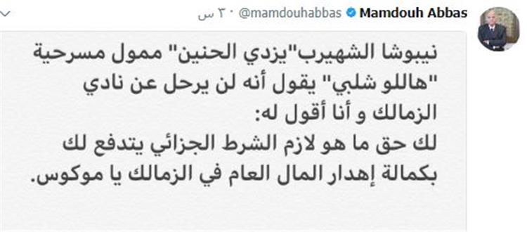 ممدوح عباس يسخر من "نيبوشا": "يا موكوس"