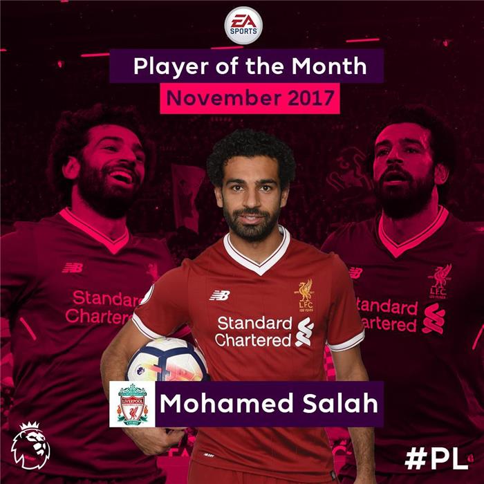 صلاح حاز أيضًا على لاعب الشهر في ليفربول، وأفضل هدف في فريقه بشهر نوفمبر، كما توج بجائزة بي.بي.سي كأفضل لاعب أفريقي قبل أيام قليلة.