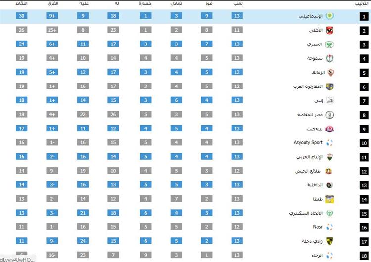انتهت منافسات الجولة الـ13 لبطولة الدوري الممتاز، أمس الجمعة، وجاءت النتائج كلها في صالح الإسماعيلي المتصدر برصيد 30 نقطة.