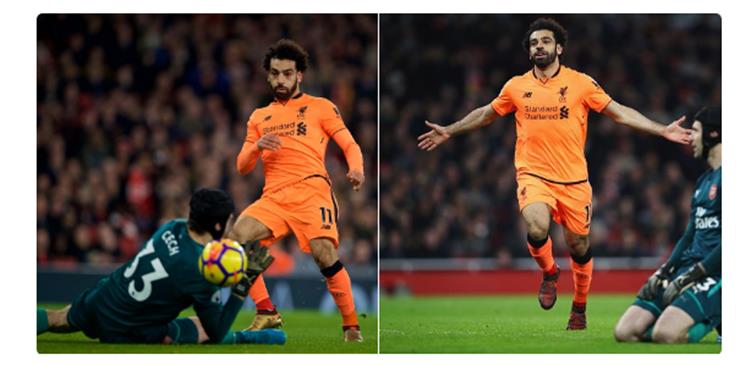 ألتقطت الكاميرات صورتين توضح قيام لاعب فريق ليفربول "محمد صلاح" بتغيير حذاءه بين شوطي المباراة أمام فريق آرسنال مساء أمس.