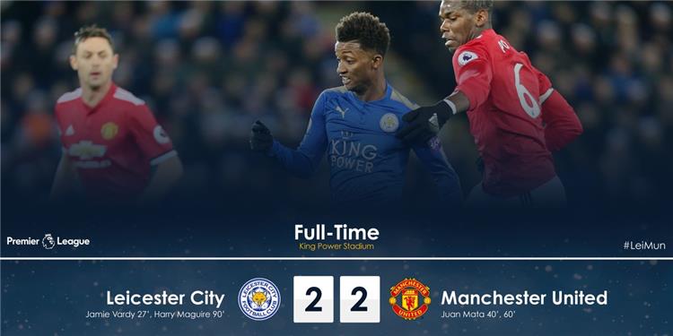 سقط فريق مانشستر يونايتد في فخ التعادل الإيجابي مع نظيره فريق ليستر سيتي بهدفين لمثلهم في المباراة التي جمعت بينهما مساء اليوم ضمن لقاءات الجولة التاسعة عشر من بطولة الدوري الإنجليزي.