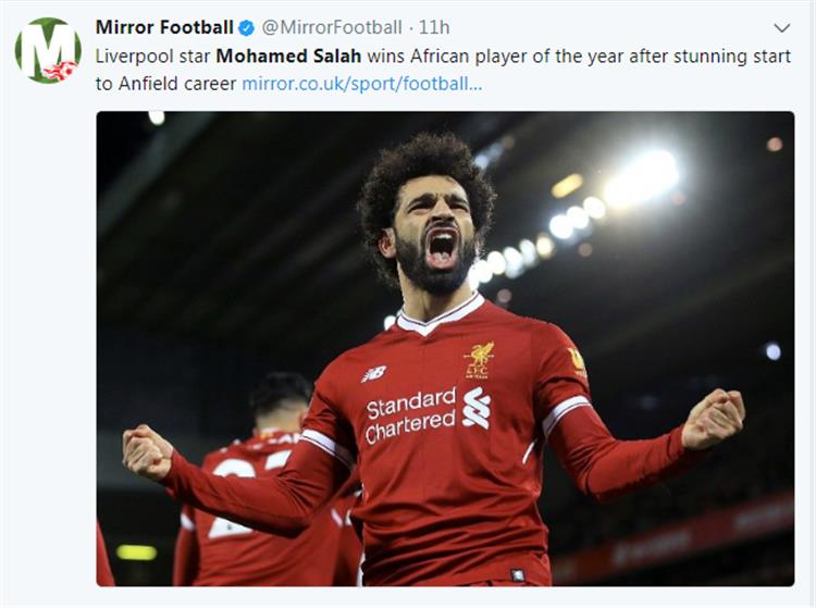 وواصلت الصحيفة عبر تقريرها أن محمد صلاح قد فاز بجائزة أفضل لاعب في أفريقيا، وهي مكافأة للنجاح على جميع الجبهات في عام 2017، لمصر بعد أن ألهم بلاده وقادهم إلى كأس العالم الذي طال انتظاره، وبدأ بداية هائلة مع ليفربول.